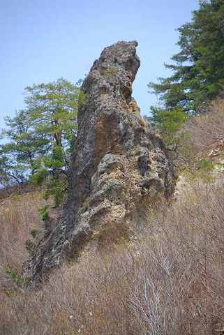 川の近くにある自然岩の観音像。