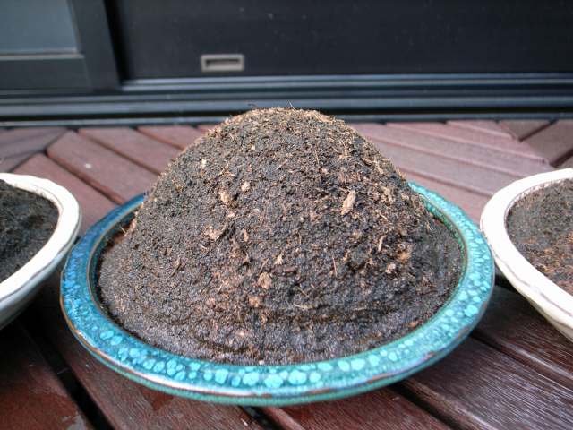 そしたら、画像のような皿鉢に「混ぜ合わせた用土」を盛って山をつくるんですよ。